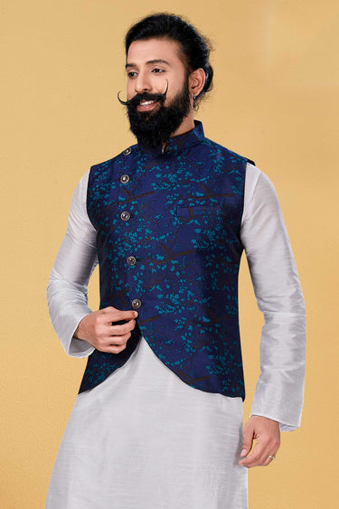 Blue Silk Fabric Sangeet Wear Trendy Readymade Men Jacket