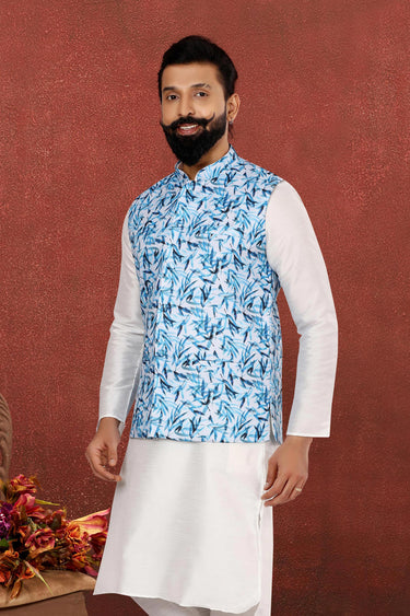 Cotton Wedding Wear Attractive Readymade Men Jacket In Cyan Color