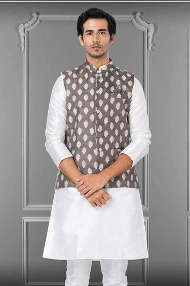 Grey Jacquard Silk Fabric Festive Wear Captivating Readymade Jacket For Men