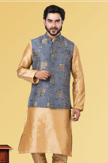 Jacquard Silk Fabric Grey Festive Wear Readymade Men Stylish Jacket