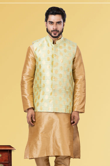 Jacquard Silk Sea Green Wedding Wear Readymade Designer Men Jacket