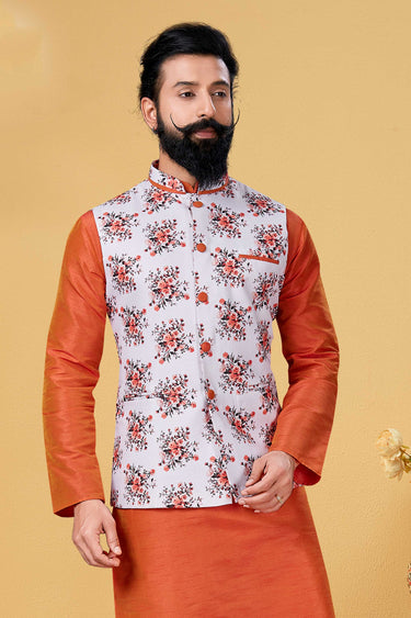 Peach Color Cotton Fabric Festive Wear Readymade Men Jacket