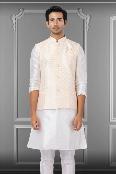 Peach Jacquard Silk Fabric Function Wear Readymade Jacket For Men