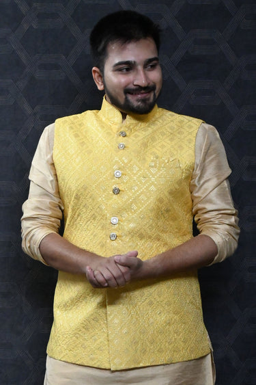 Stunning Art Silk Sangeet Wear Readymade Men Yellow Color Jacket