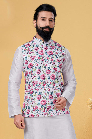 White Color Cotton Fabric Festive Wear Readymade Lovely Men Jacket