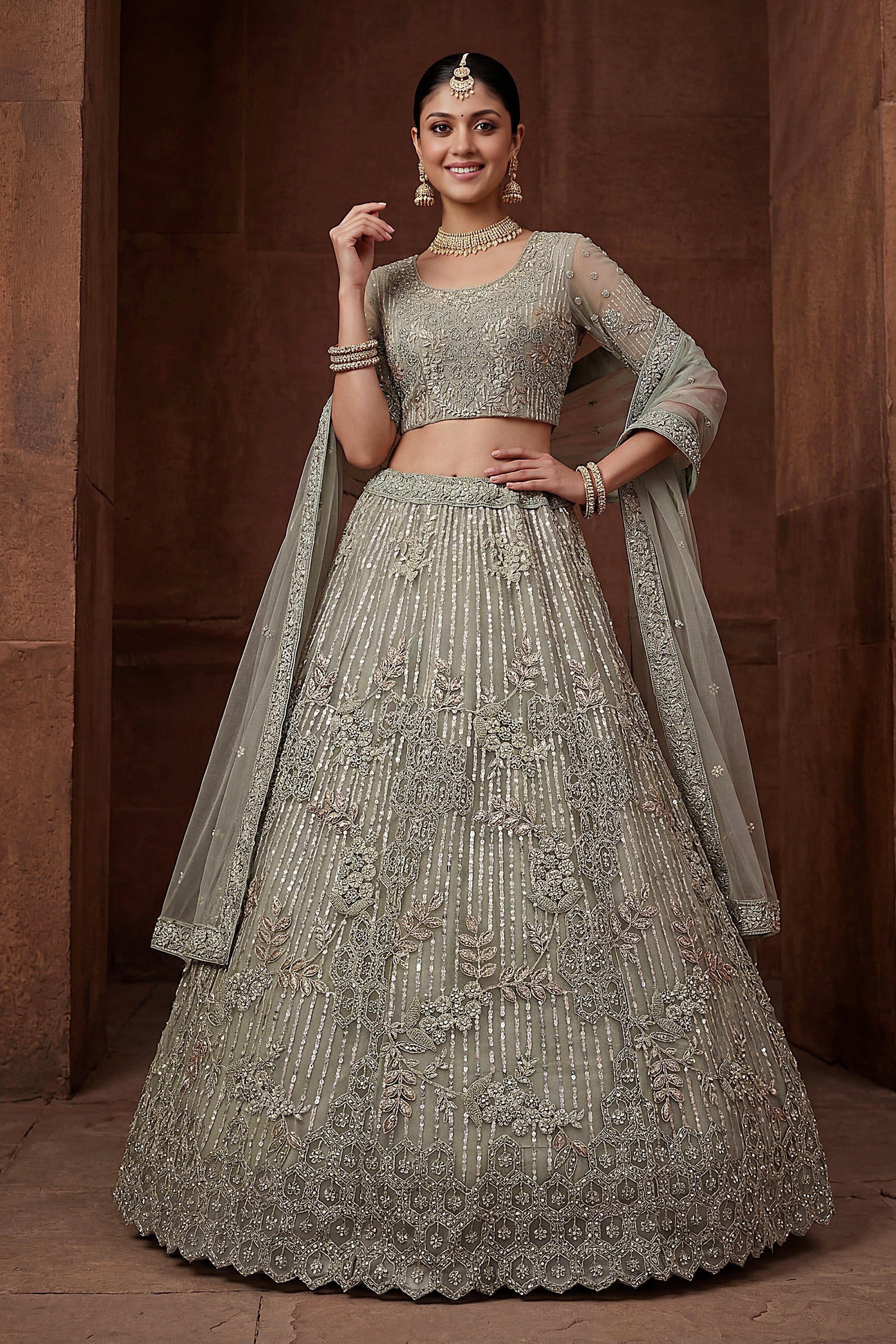 Embroidered Sea Green Net Wedding Wear Lehenga Set