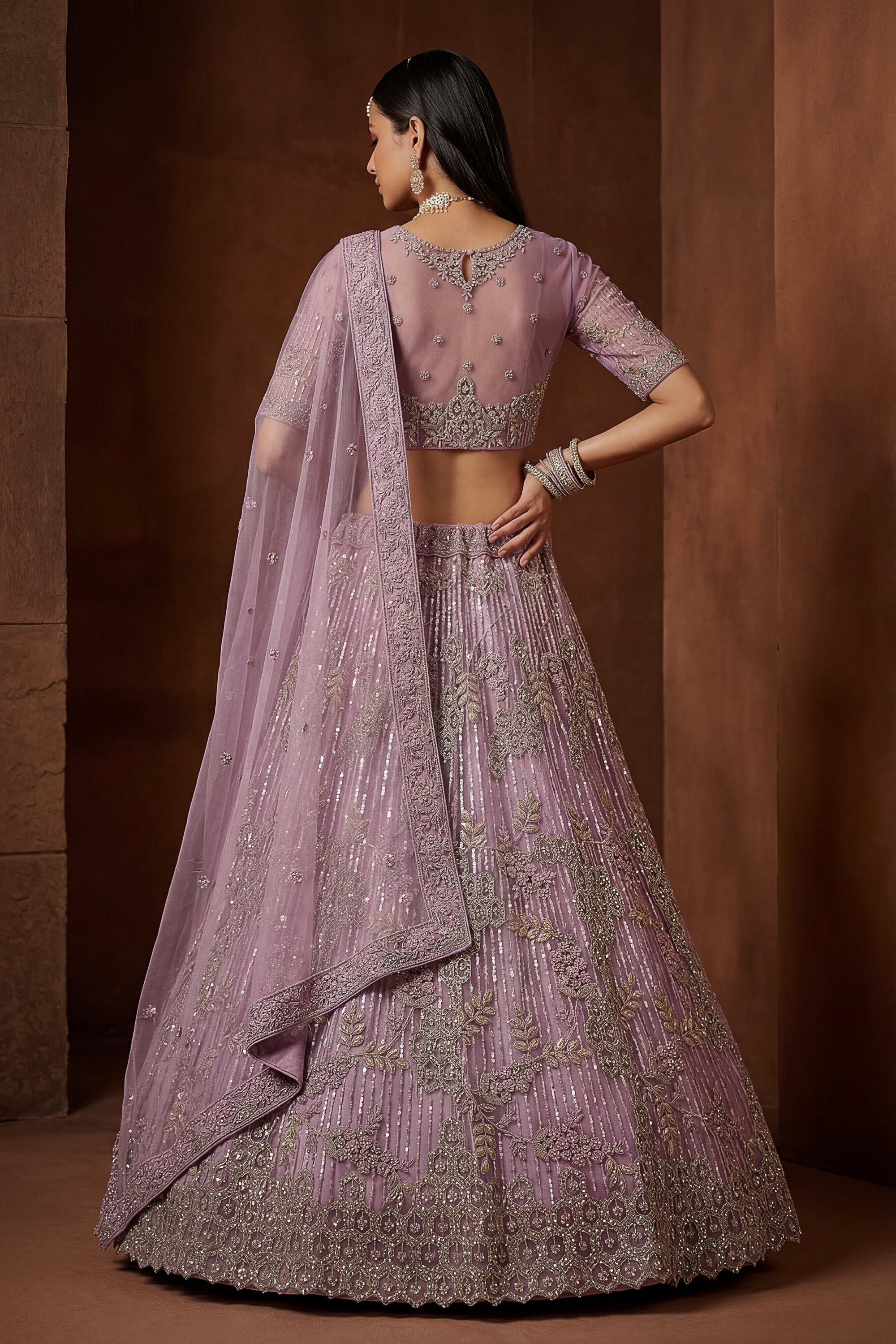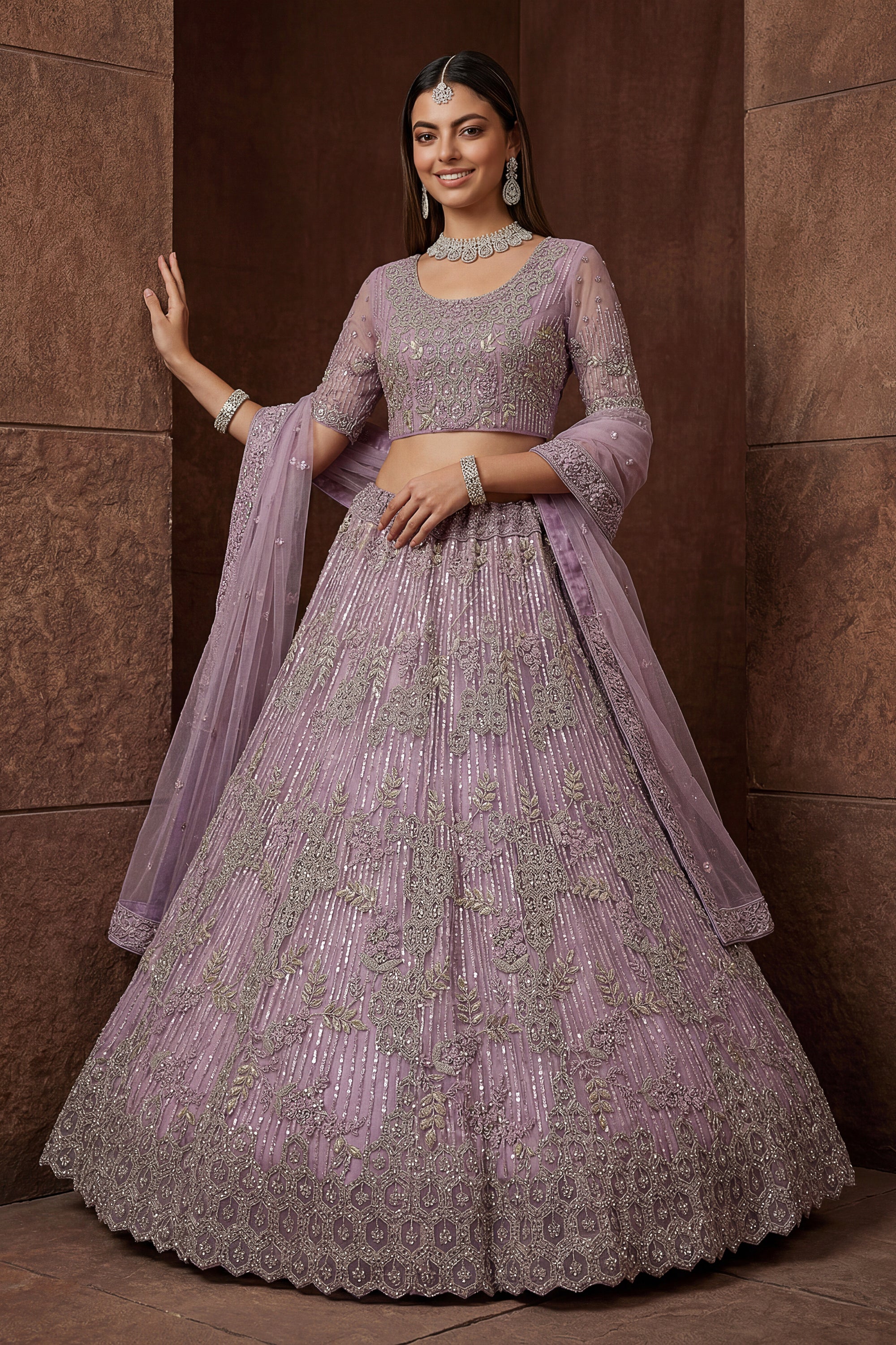 Lavender Embroidered Net Wedding Wear Lehenga Choli