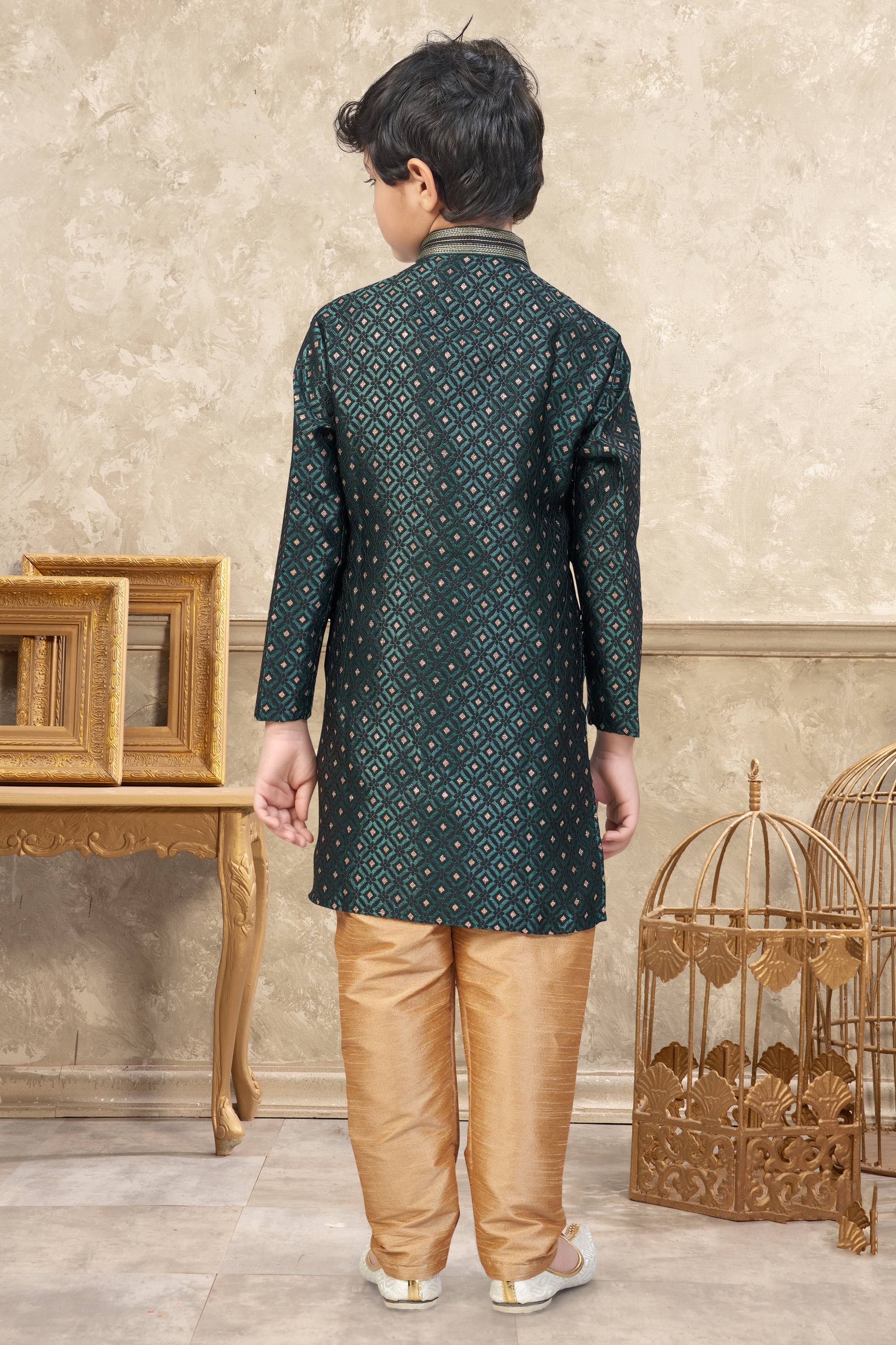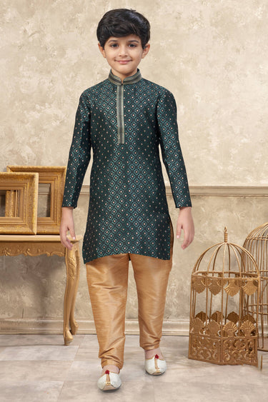 Dark Green Sangeet Wear Jacquard Fabric Readymade Kurta Pyjama For Boys