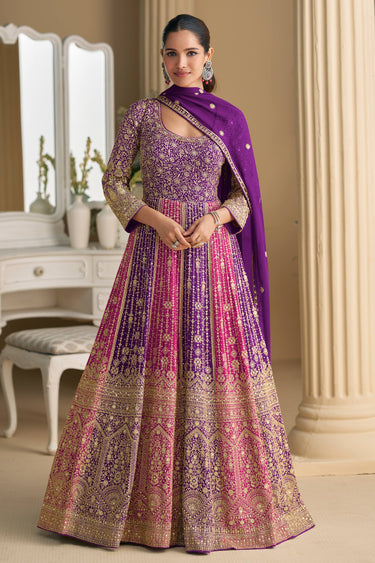 Lovely Purple Embroidery Work Anarkali Salwar Kameez