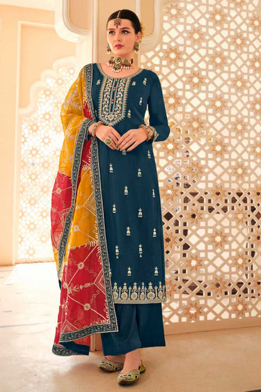 Chinon Fabric Teal Color Supreme Pakistani Replica Suit
