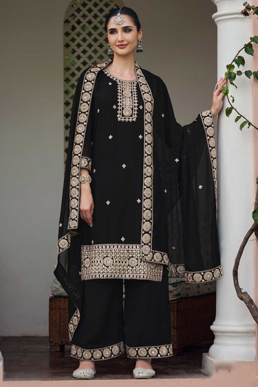 Classic Black Color Embroidered Palazzo Suit In Georgette Fabric