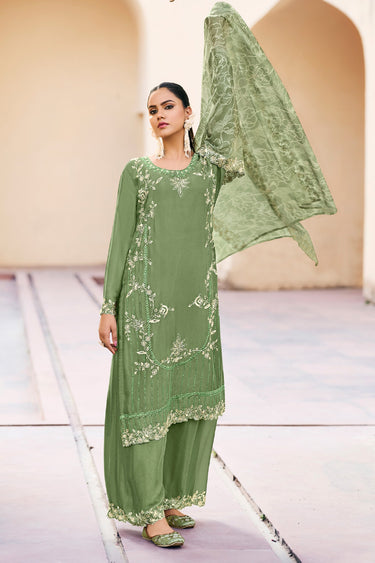 Classic Green Color Function Wear Palazzo Dress