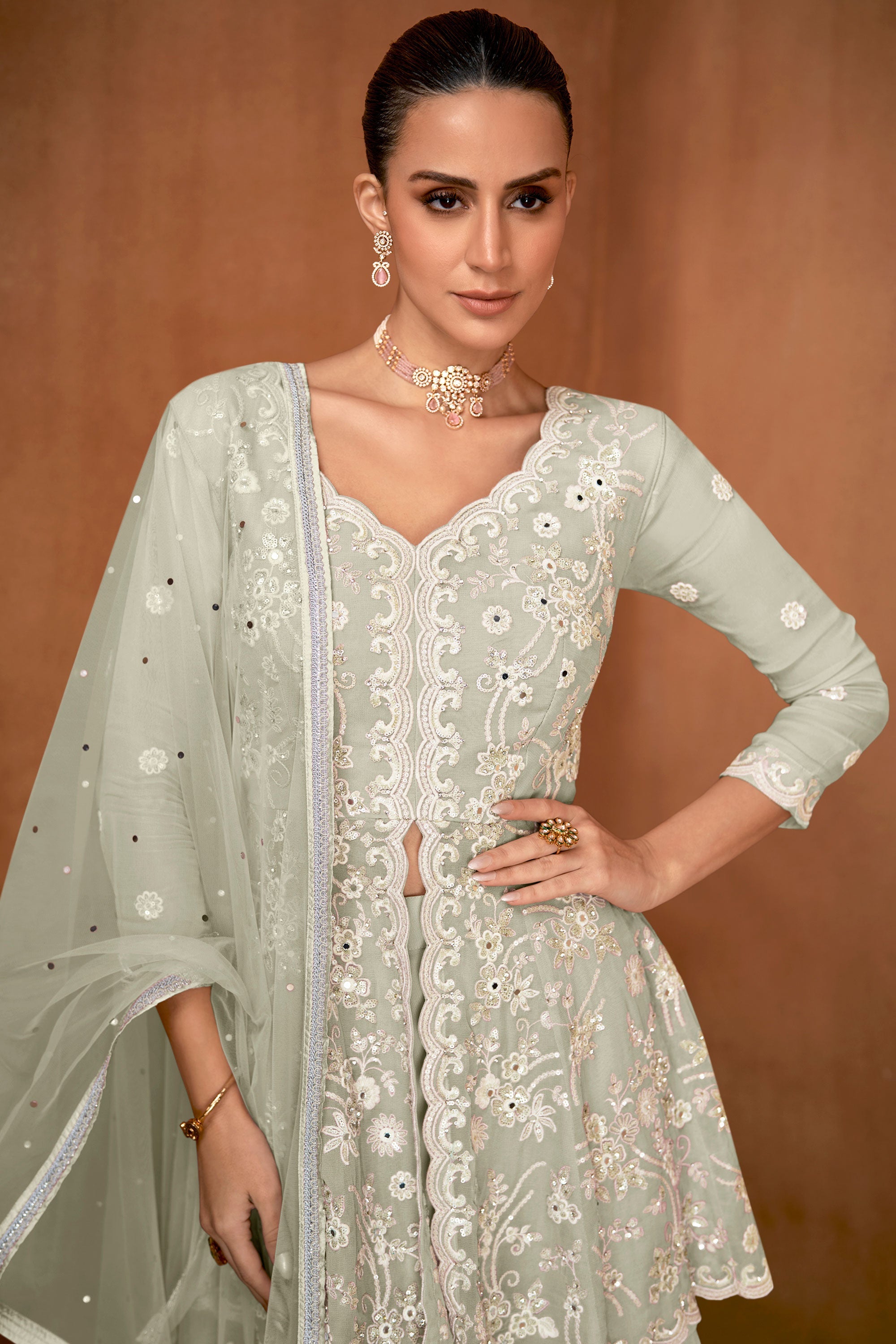 Grey Embroidered Georgette Readymade Sharara Style Suit