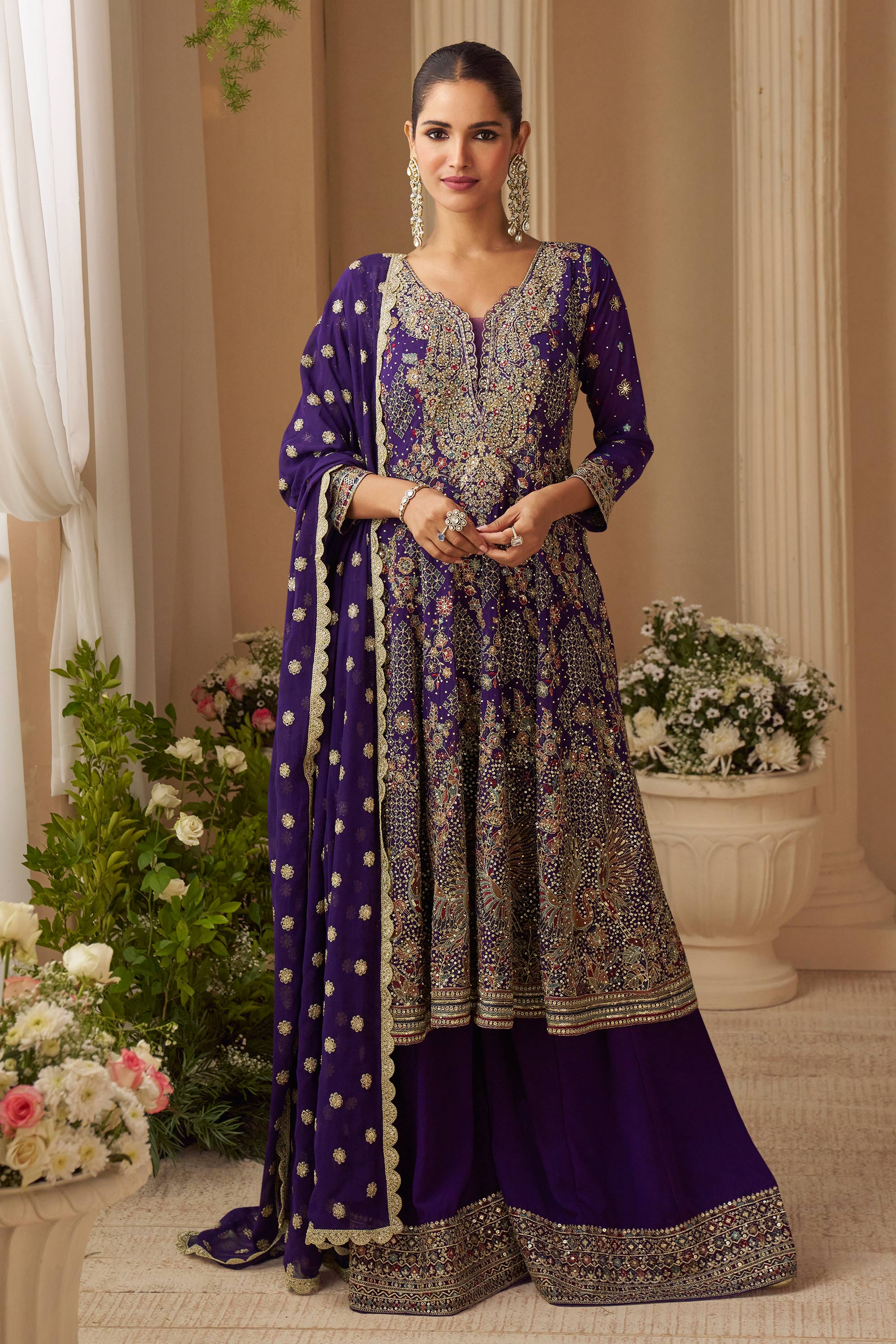 Purple Festive Wear Georgette Embroidered Readymade Palazzo Salwar Kameez