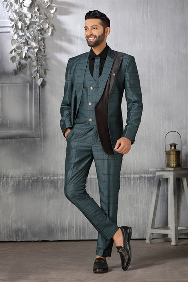 Provocative Teal Color Coat Suit In Rayon Fabric