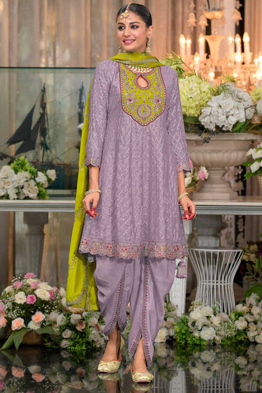 Lavender Color Chinon Fabric Coveted Readymade Patiala Suit