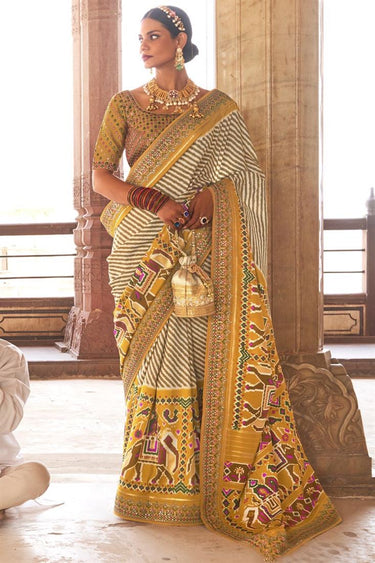 Yellow Color Patola Silk Fabric Function Wear Printed Miraculous Saree With Semi Stitched Blouse