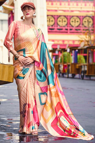 Incredible Printed Satin Fabric Multi Color Casual Wear Saree