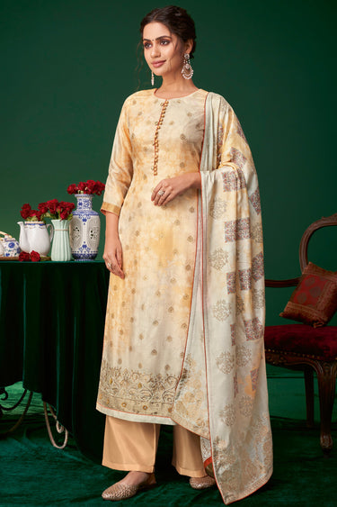 Yellow Jacquard Silk Palazzo Salwar Kameez