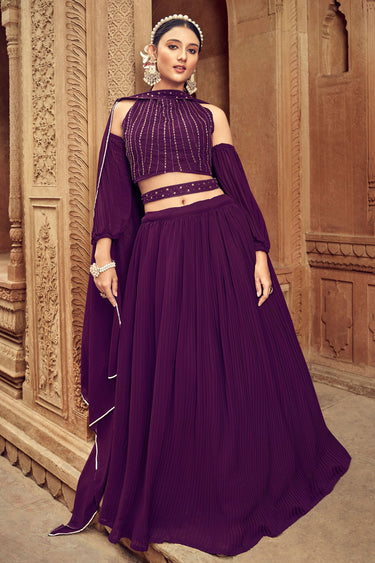 Purple Color Georgette Fabric Enticing Function Style Readymade Lehenga