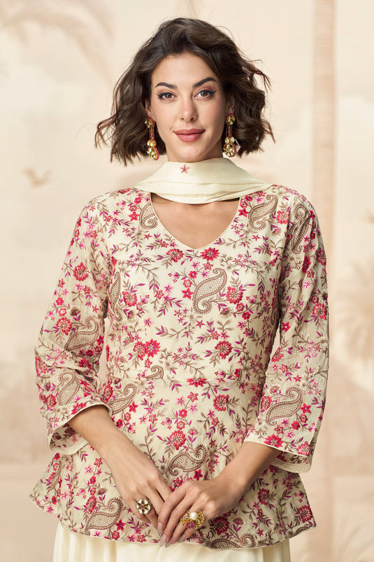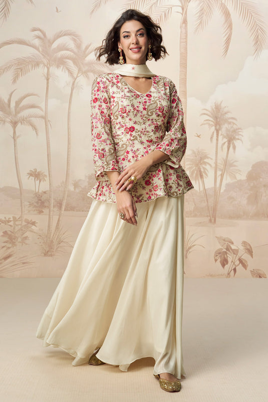 $131.00 AUD$261.00 AUD Original Price Save 50%/ Chinon Fabric With Embroidery Work Beige Color Readymade Palazzo SuitSave 50%
