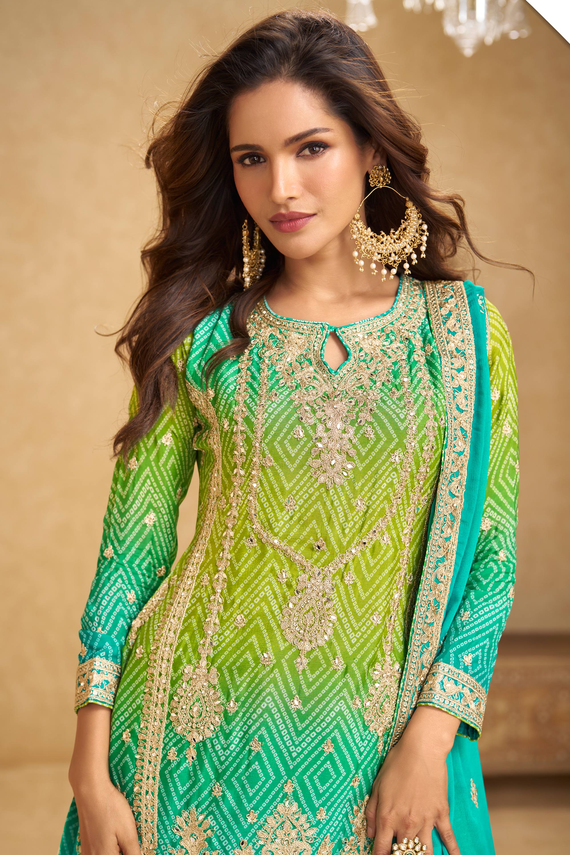 Chinon Sea Green Embroidered Readymade Palazzo Salwar Kameez