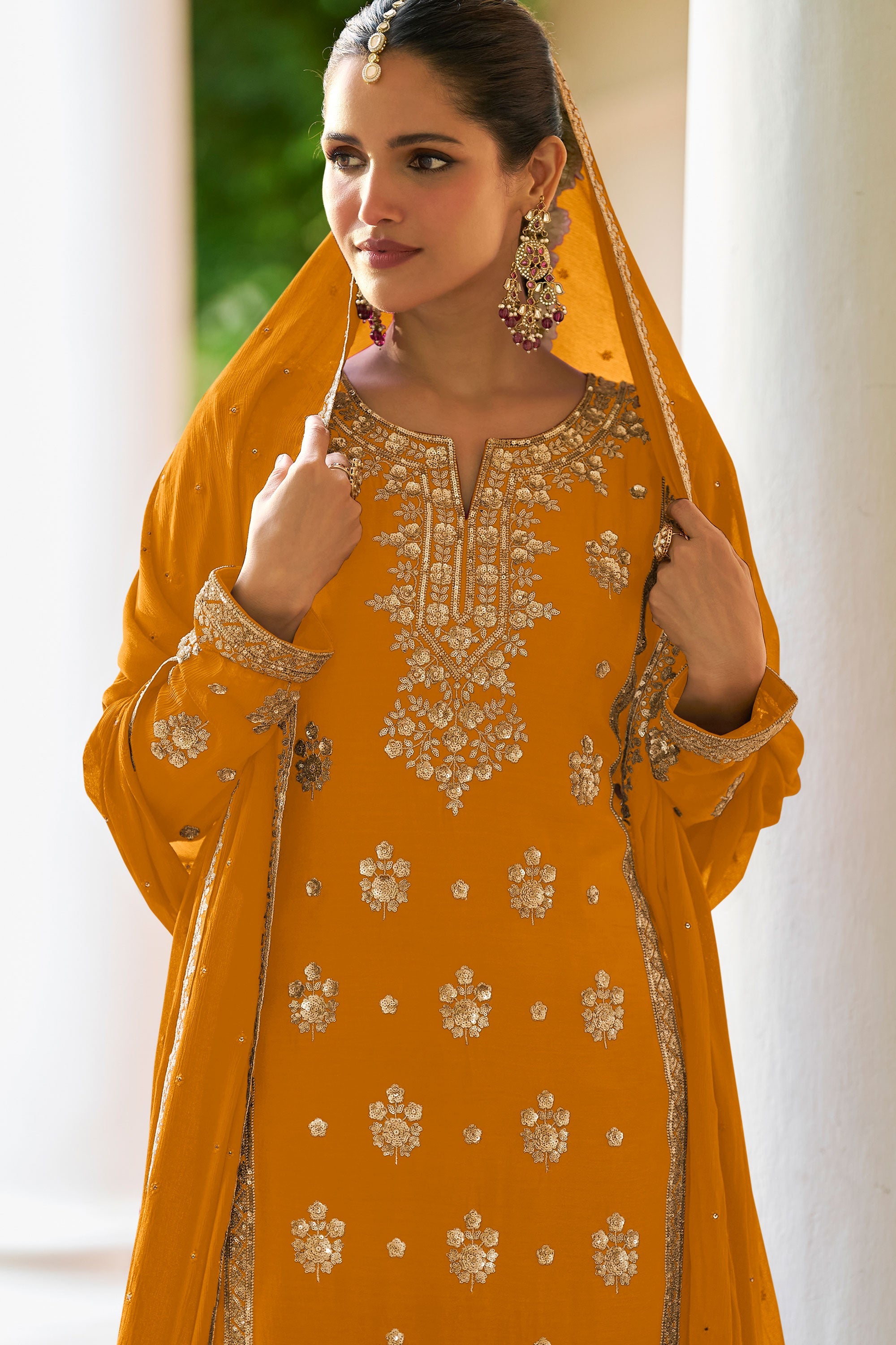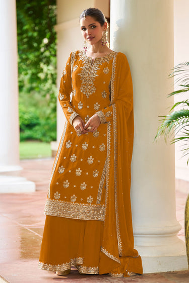 Mustard Embroidered Readymade Palazzo Salwar Kameez