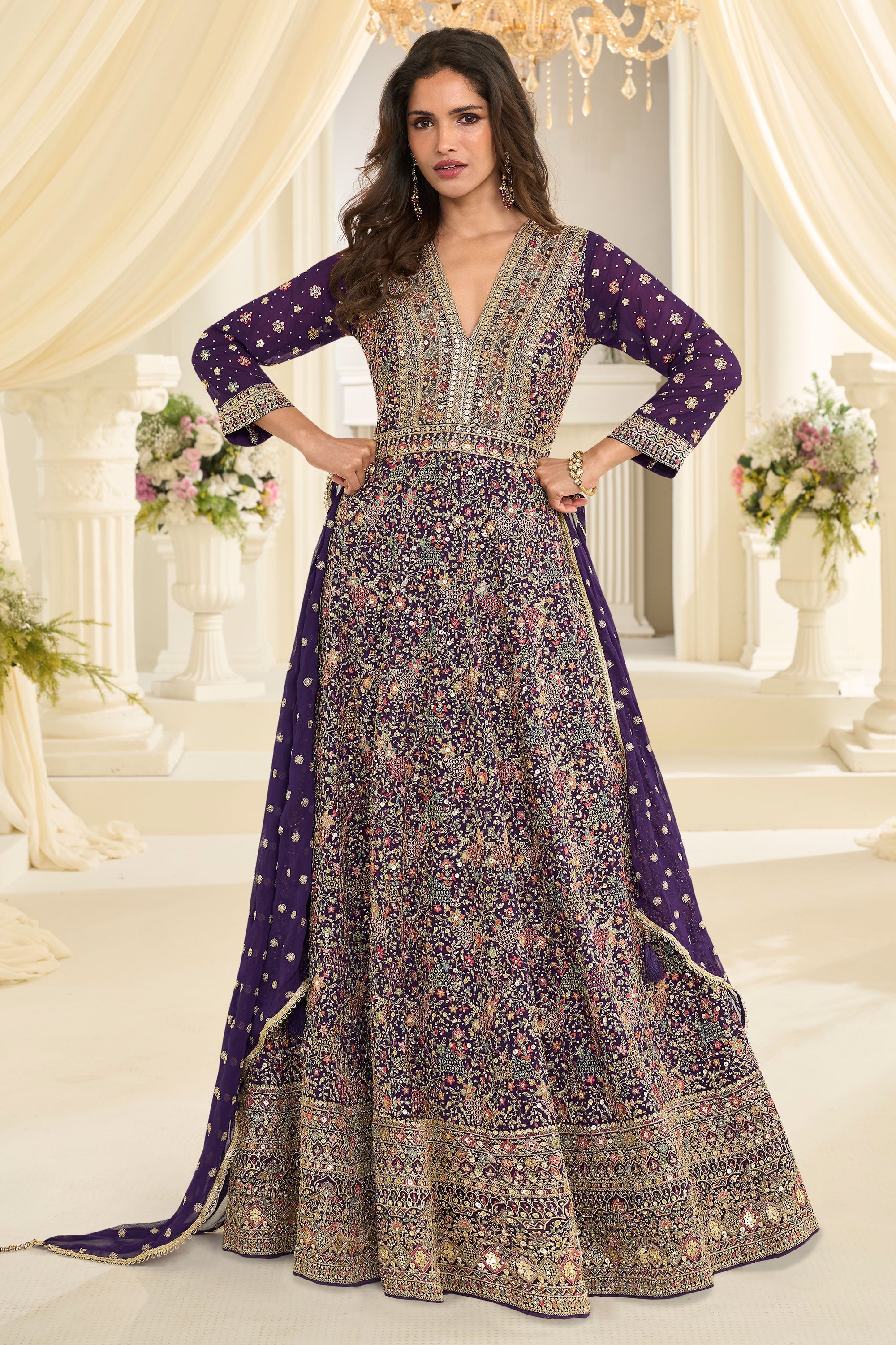 Purple Georgette Designer Readymade Anarkali Salwar Kameez