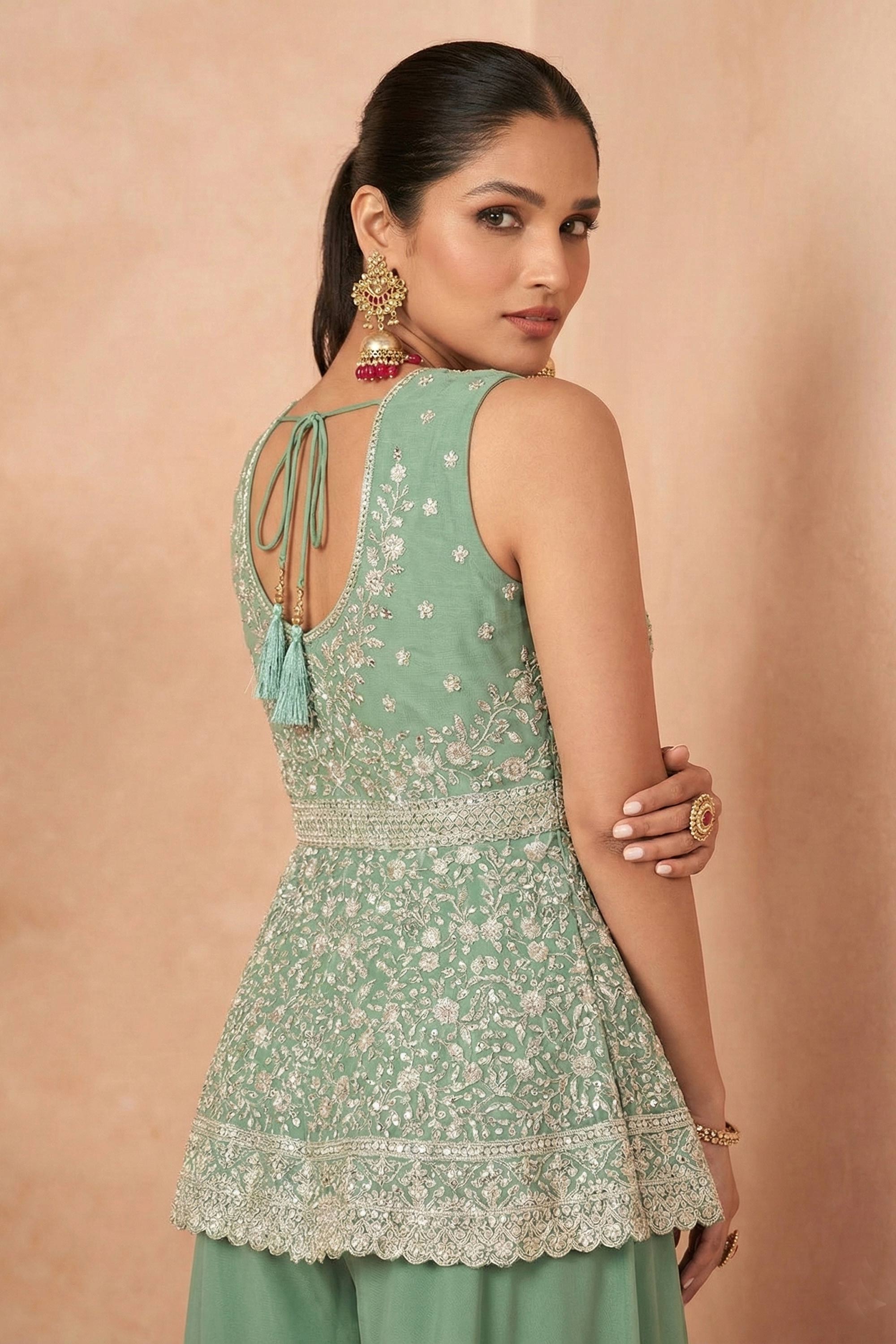 Sea Green Georgette Embroidered Readymade Palazzo Salwar Kameez