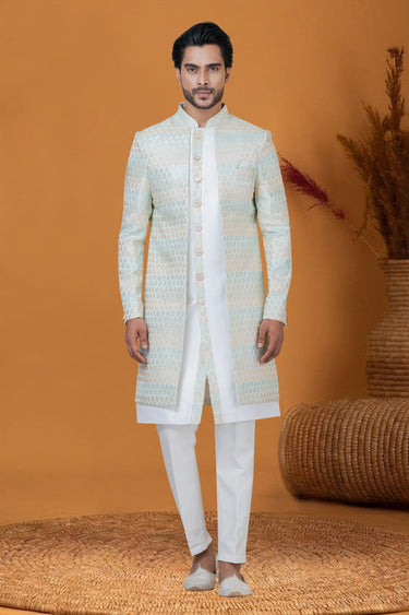 Sangeet Wear Off White Jacquard Silk Readymade Lovely Jacquard Work Indo Western For Men