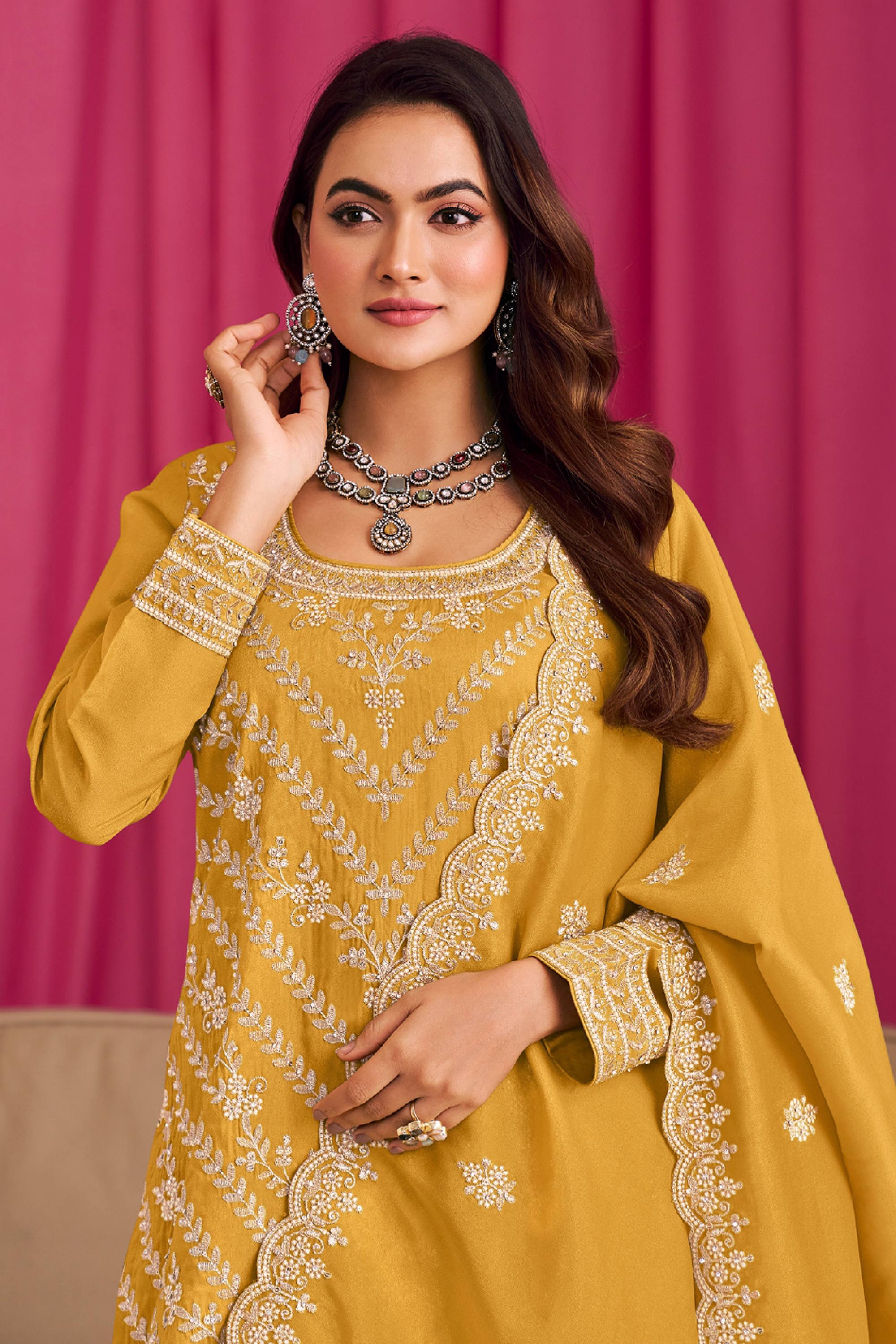 Add a touch of tradition to your closet with the Art Silk Embroidered Readymade Top With Palazzo Salwar Suit. Crafted with fine attention to detail, the beautiful embroidery on the top creates a refined aesthetic that pairs beautifully with the flowing, relaxed palazzo. The art silk material is lightweight and breathable, ensuring both style and comfort throughout your day. Whether you’re attending a celebration, a family event, or a casual gathering, this outfit is designed to help you look effortlessly chic. Its ready-to-wear design eliminates any hassle, allowing you to focus on enjoying your special moments in style.