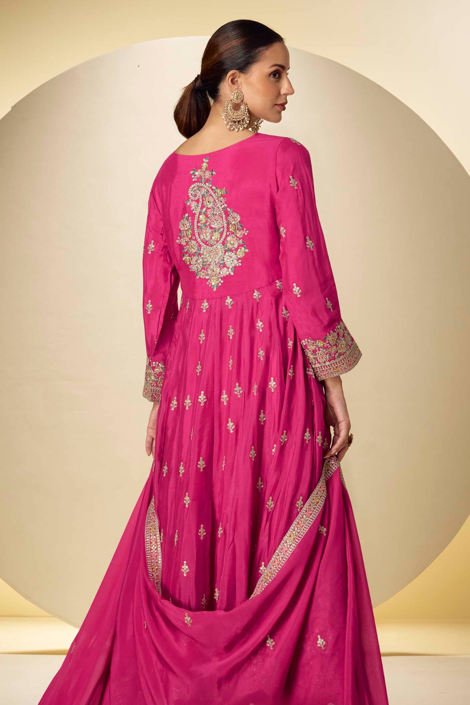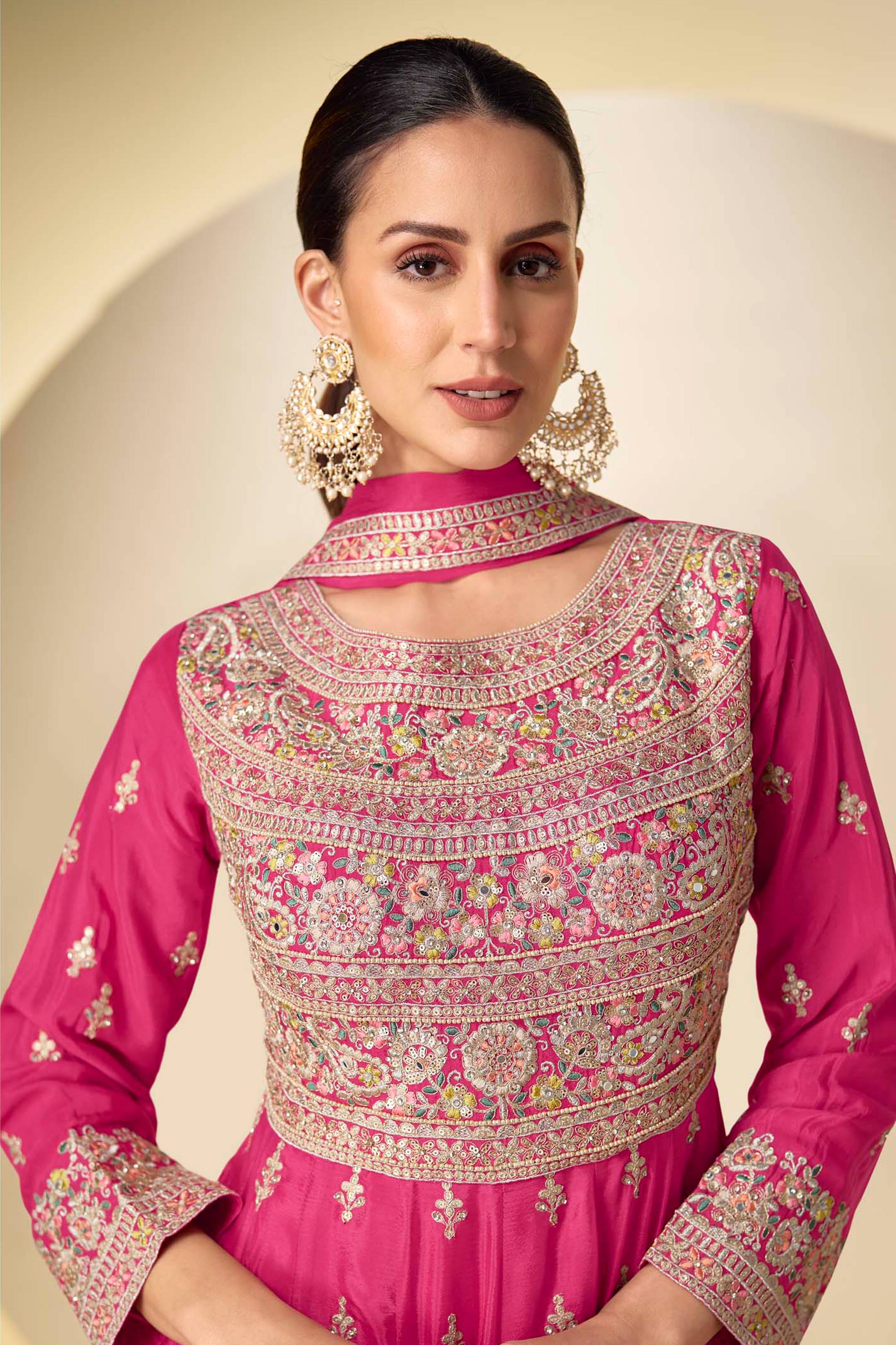 Chinon Embroidered Pink Festive Wear Readymade Anarkali Salwar Suit