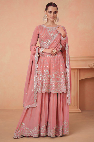 Eugeniya Belousova Chinon Fabric Peach Color Delicate Readymade Palazzo Suit