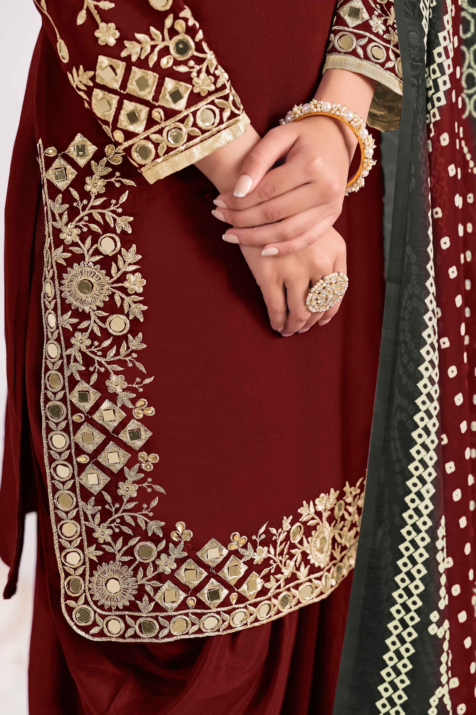Maroon Art Silk Designer Punjabi Style Suit With Dupatta