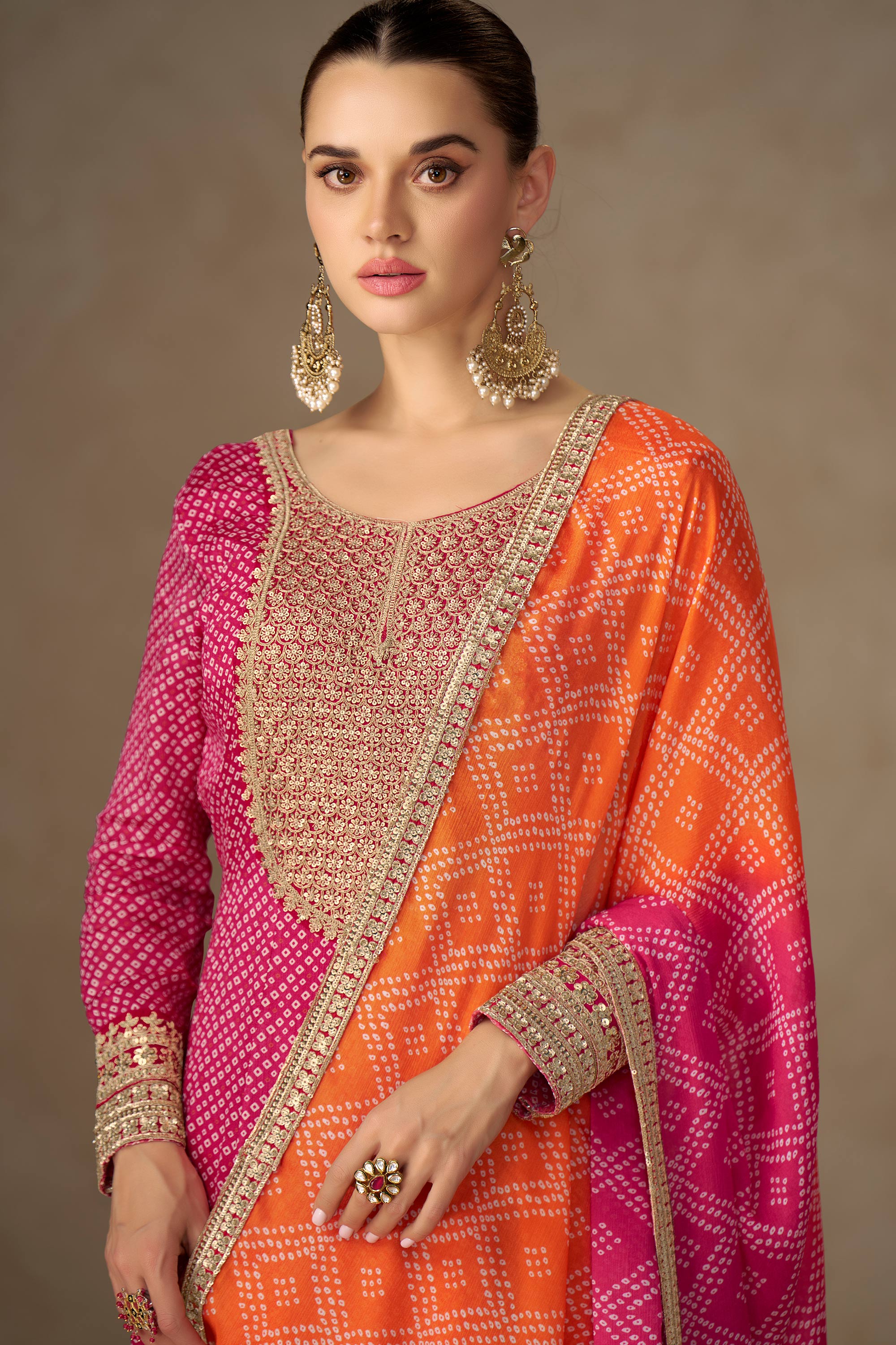 Upgrade your traditional wardrobe with the Chinon Sequins Work Readymade Anarkali Salwar Kameez. Made with soft, flowy Chinon fabric, this ready-to-wear outfit boasts elegant sequin embroidery, perfect for any special occasion. The flattering Anarkali silhouette highlights graceful pleats and ensures a stunning look that feels both modern and timeless. The set includes a comfortable matching bottom and a stylish dupatta that complements the ensemble beautifully. Whether you're attending a wedding, party, or festive gathering, this attire effortlessly combines sophistication and ease, allowing you to shine at any event. Available in various sizes, it provides a hassle-free, perfect fit for all body types.