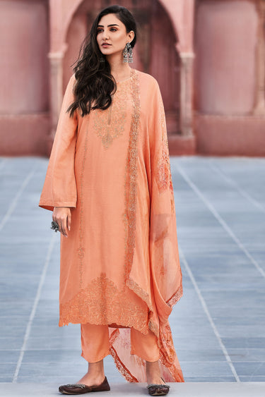 Viscose Fabric Orange Color Embroidered Salwar Suit