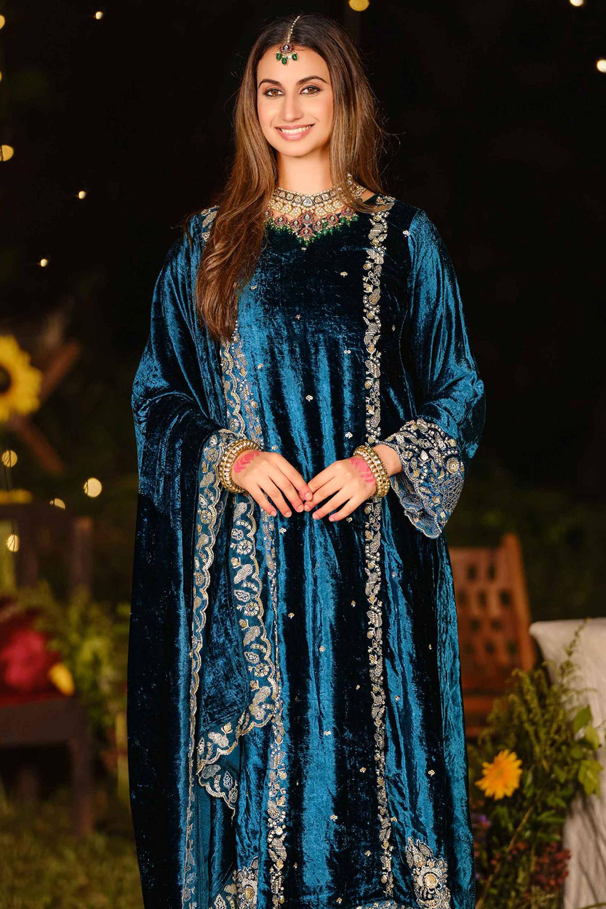 Velvet Function Wear Navy Blue Designer Salwar Suit