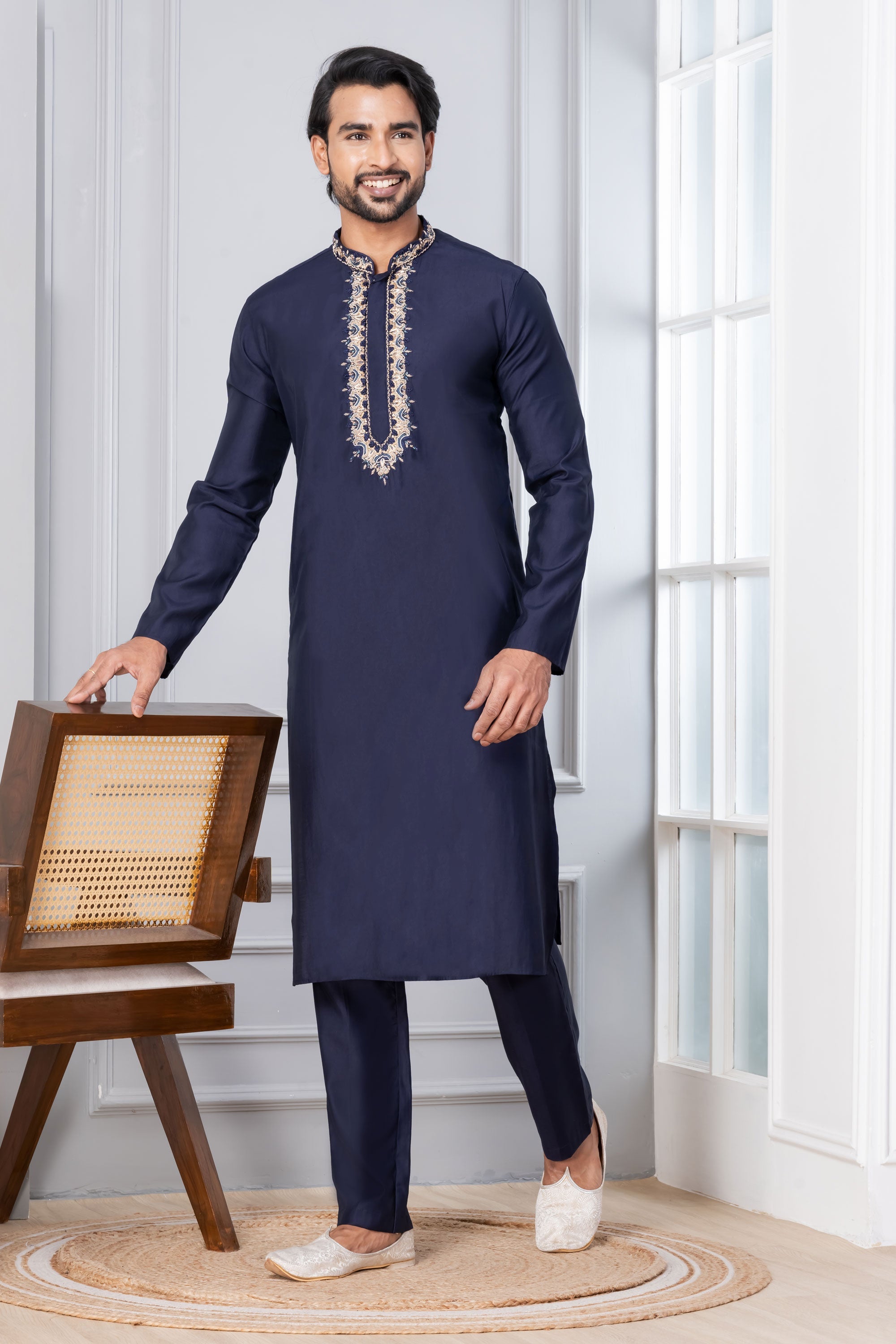 Navy Blue Sangeet Wear Readymade Lovely Kurta Pyjama For Men