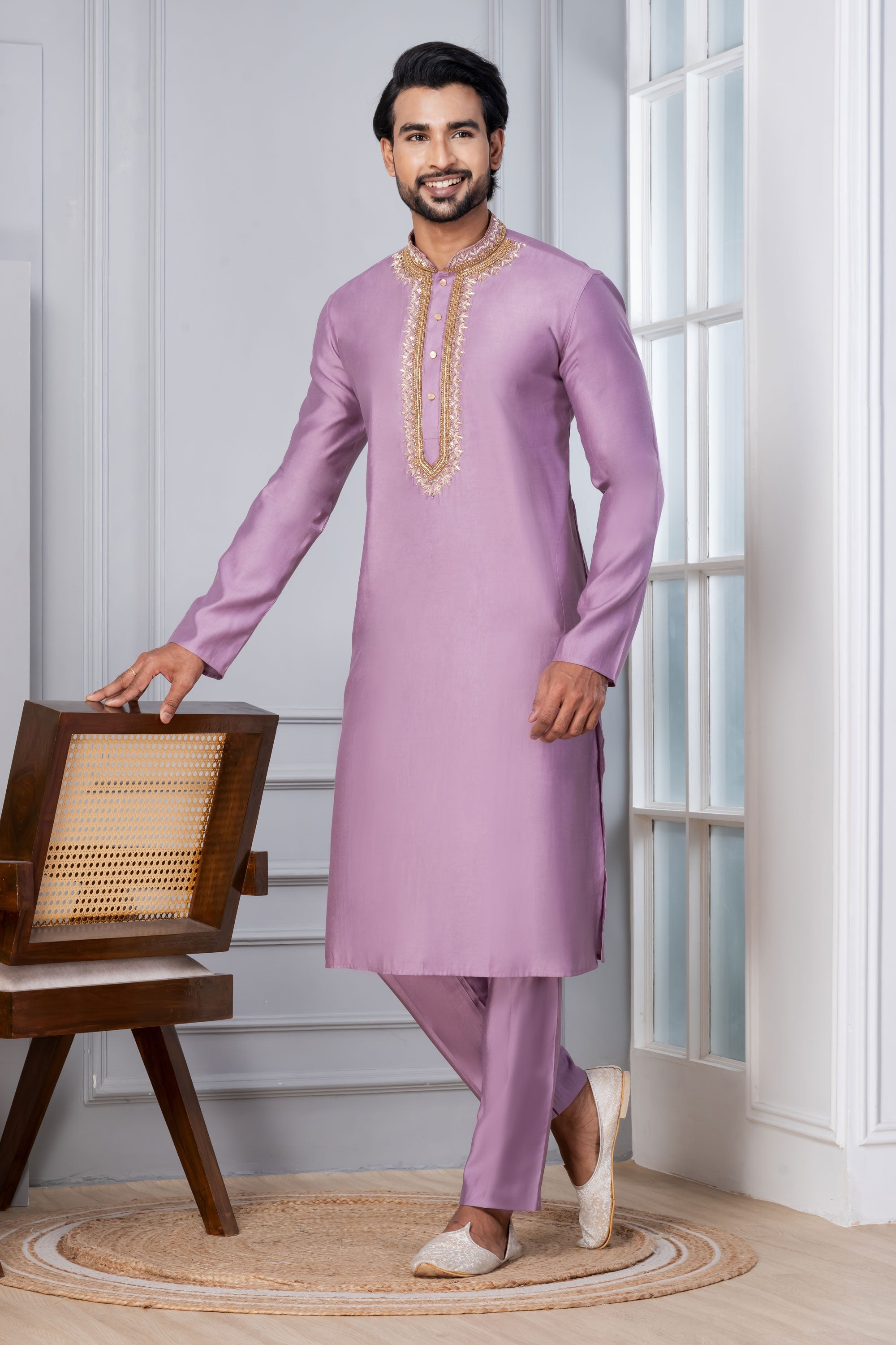Stunning Lavender Sangeet Wear Readymade Men Kurta Pyjama