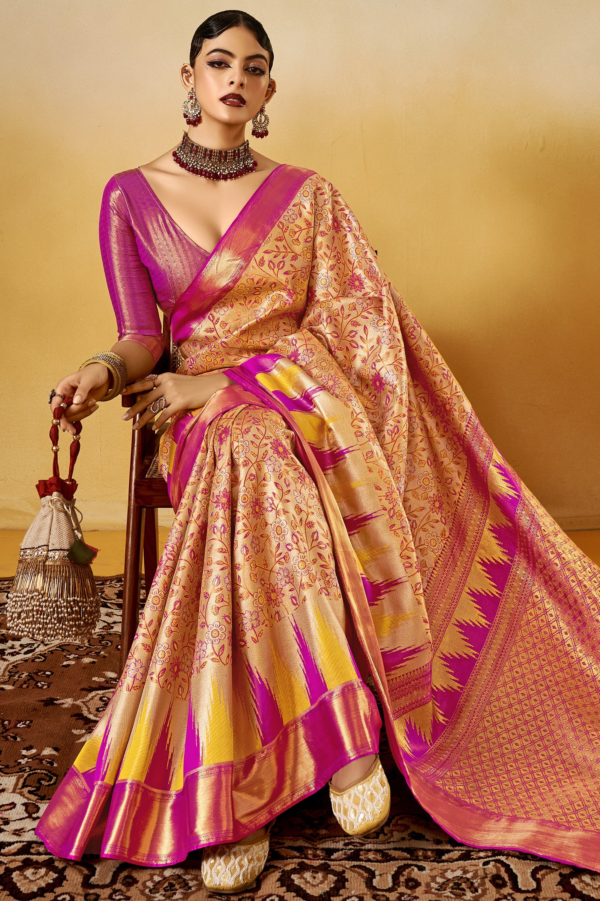 Art Silk Beige Zari Weaving Work Festive Wear Saree