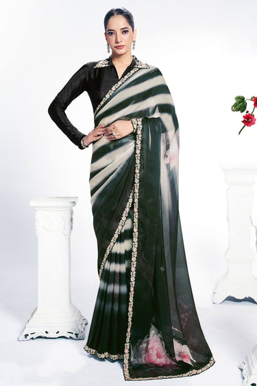 Black Satin Silk Embroidered Saree For Wedding Wear