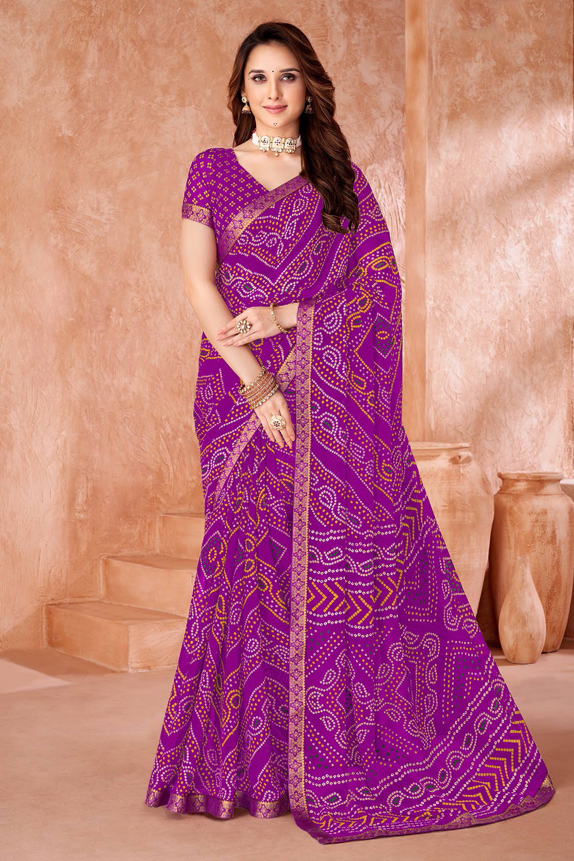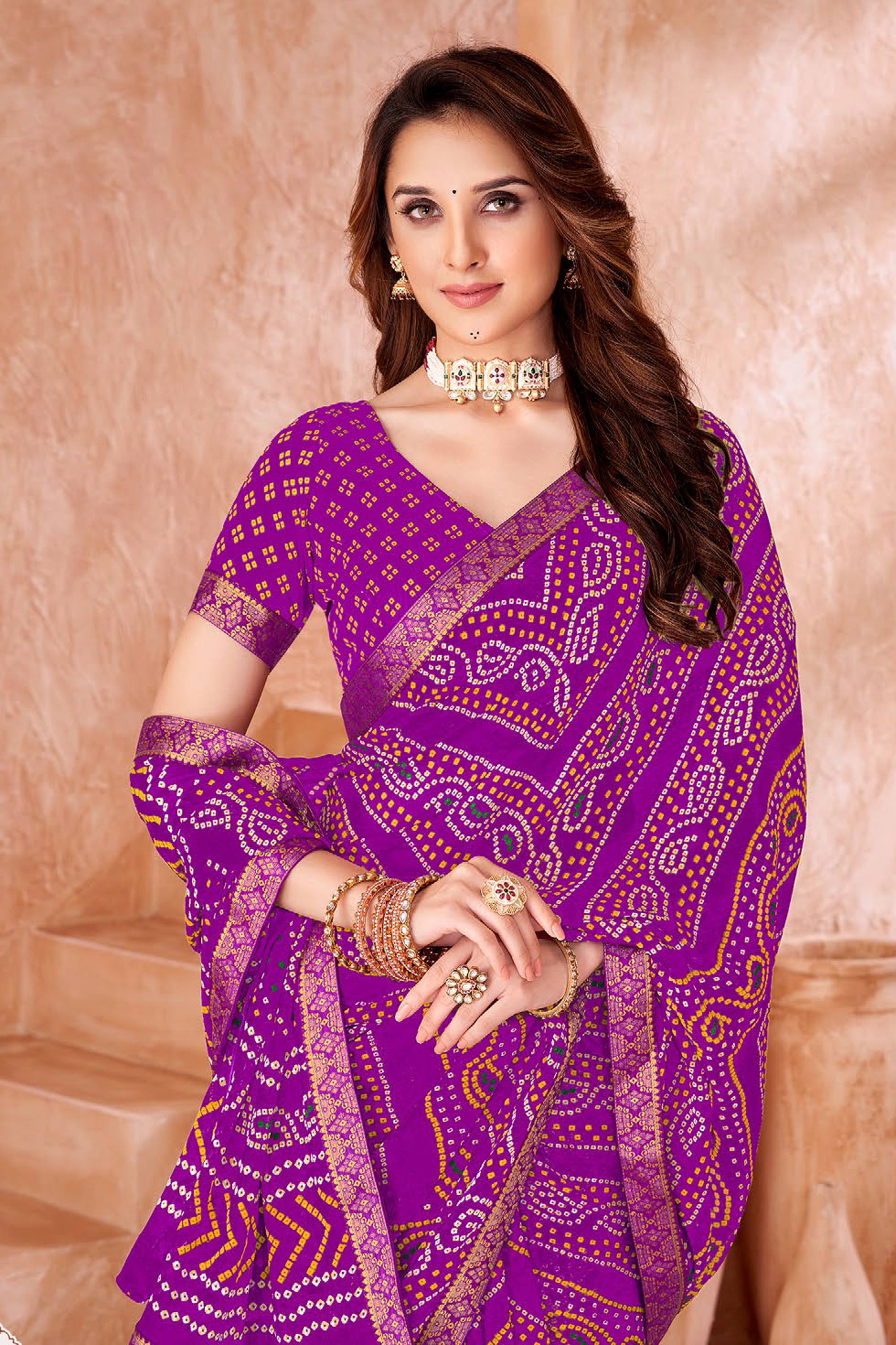 Chiffon Purple Bandhej Print Saree