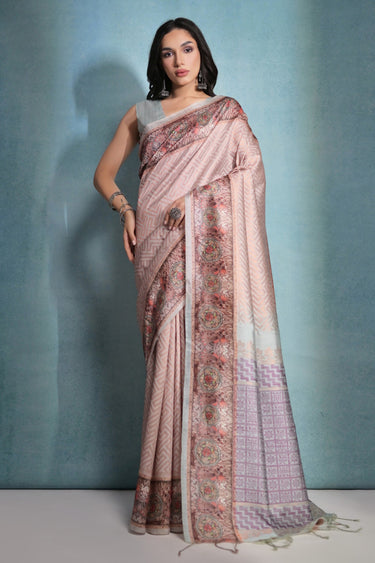 Express your grace with our captivating Cotton Silk Fabric Printed Border Work Saree. Tailored with a generous length of 5.5 meters for the saree and 0.8 meters for the blouse, it offers comfort with elegance. Zari woven all over the body and coupled with a unique printed border, this saree accentuates your look for any special occasion. This saree calls for dry cleaning only and is prepared for instant shipping. Slight color variation enhances its individuality.