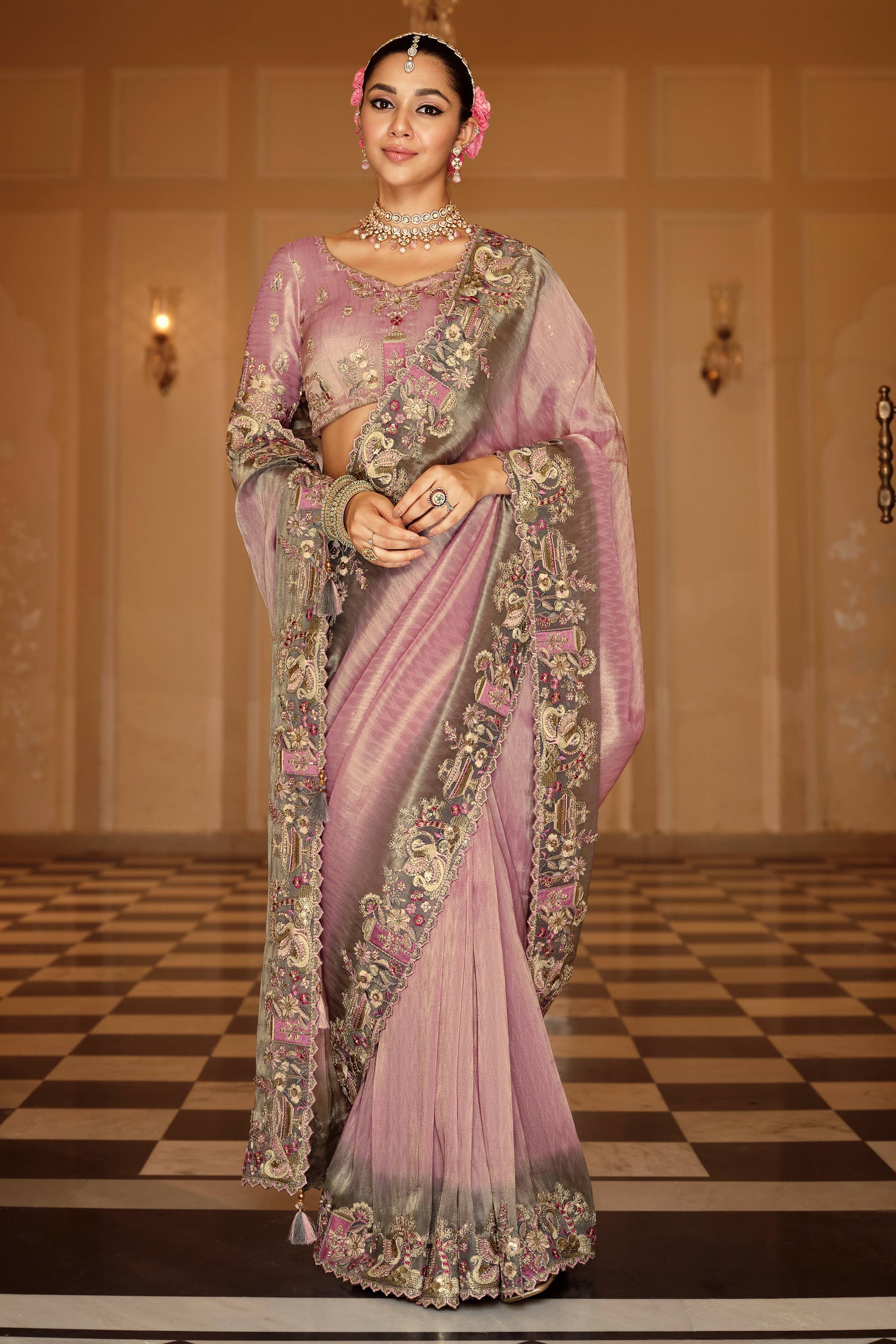 Gorgeous Traditional Pink Viscose Jacquard Saree