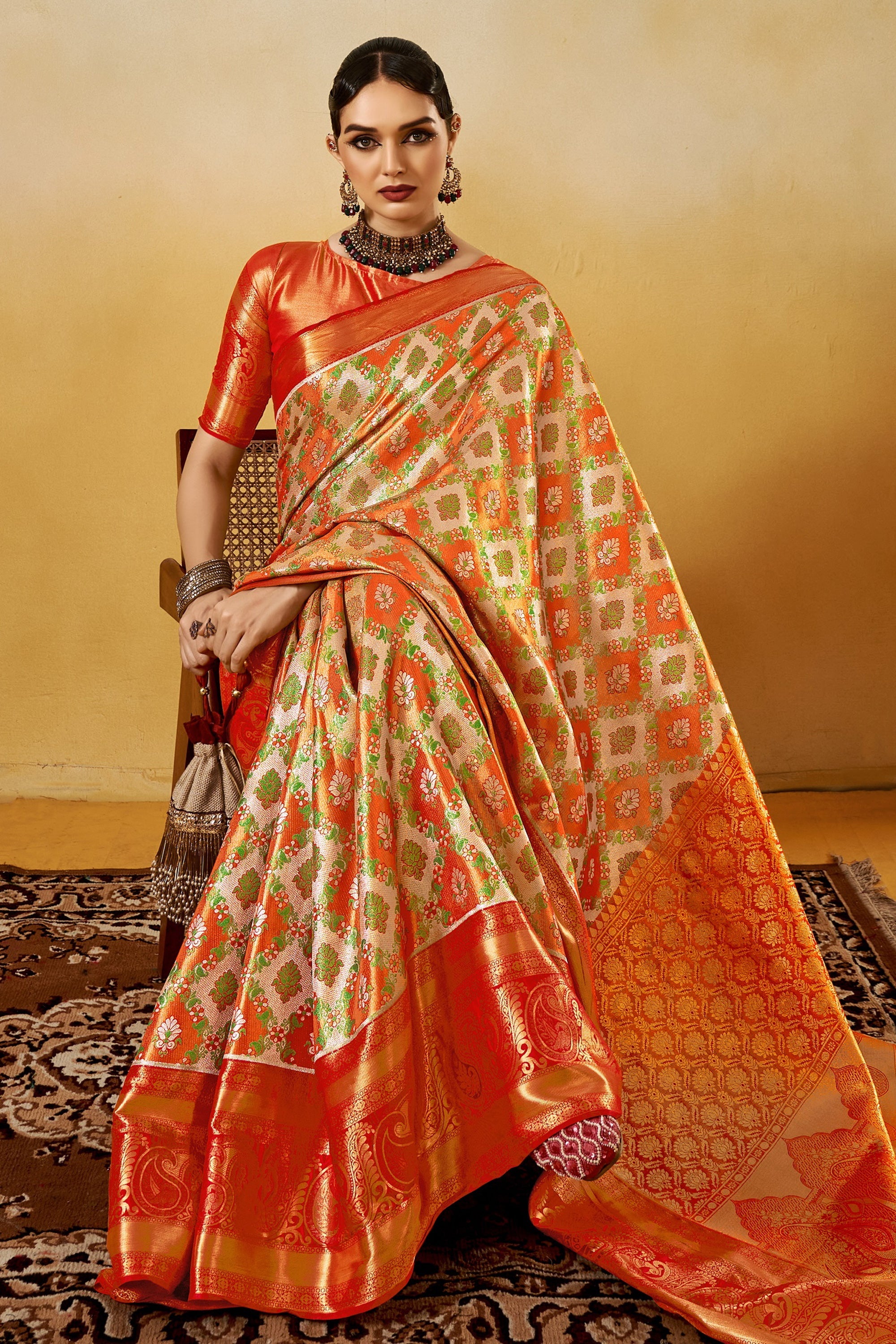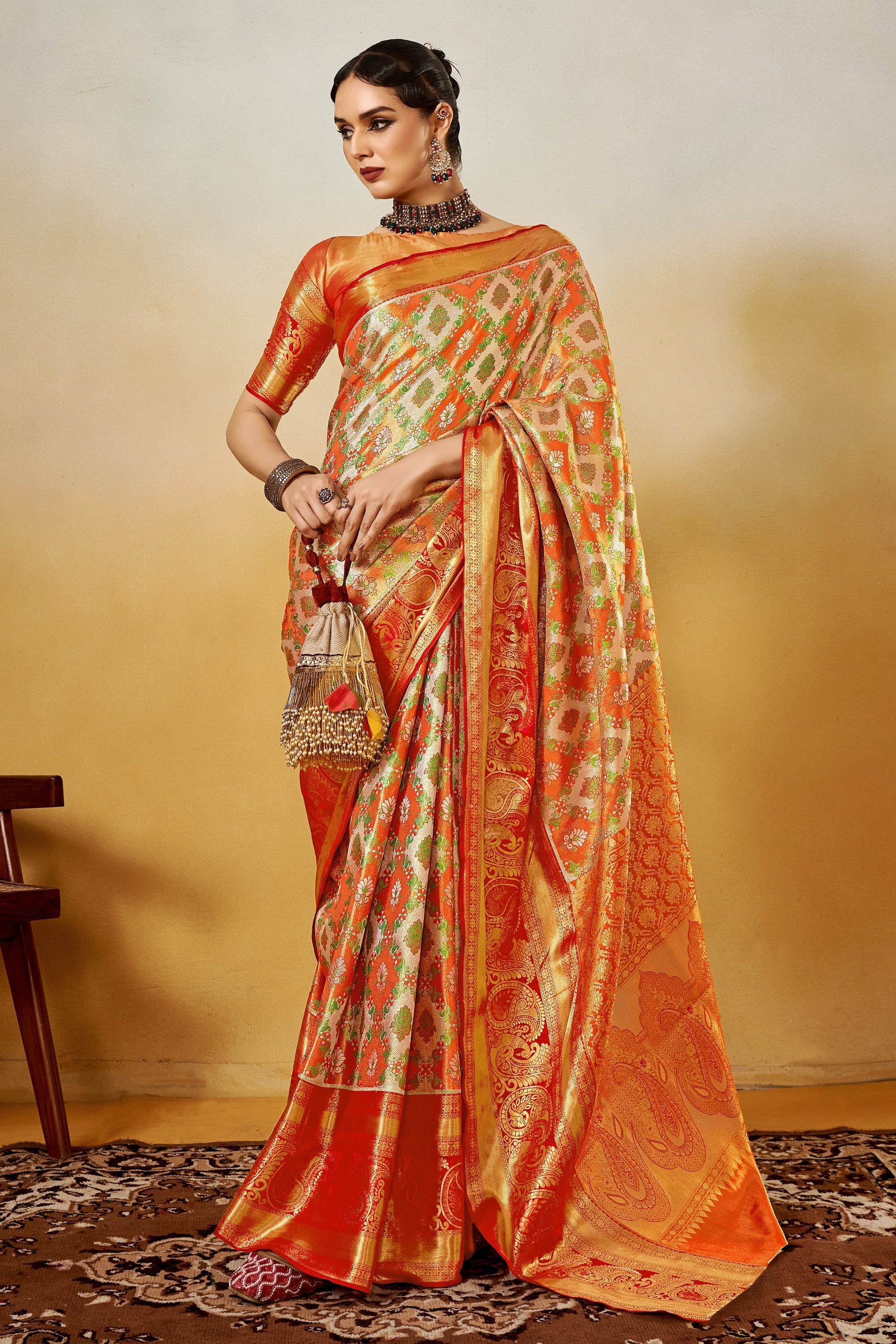 Orange Festive Wear Art Silk Zari Weaving Work Saree