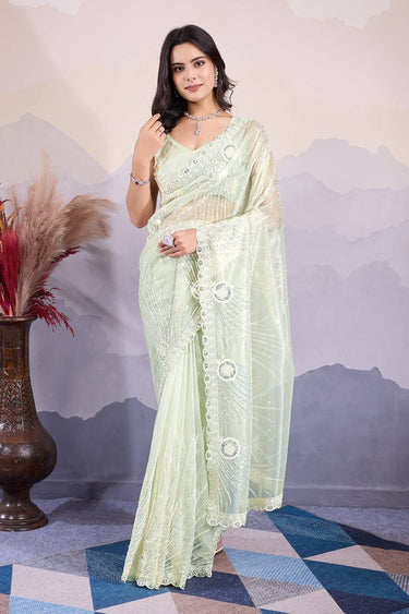 Sequins Work Net Sea Green Occasion Wear Saree