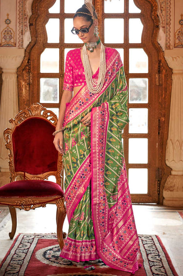 Tempting Art Silk Sea Green Color Patola Printed Saree