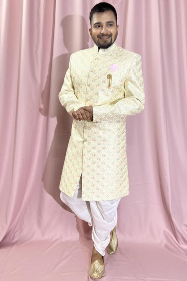 Cream Gorgeous Silk Fabric Wedding Wear Readymade Indo Western For Men