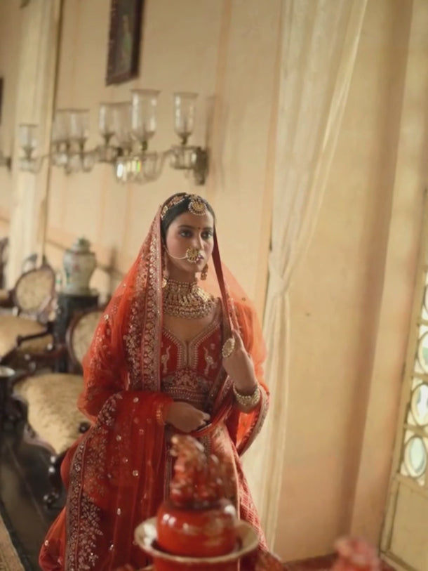 Turn heads on your special day with this exquisitely designed bridal lehenga. The intricate embroidery highlights traditional artistry while delivering a modern flair. Made with premium quality fabrics, the lehenga offers both comfort and elegance for all-day wear. The vibrant colors and striking detailing ensure that you'll shine at any celebration. Paired with a beautifully designed blouse that complements the lehenga perfectly, this ensemble is ideal for weddings, receptions, or festive occasions. Flaunt your style effortlessly while making memories in this one-of-a-kind outfit. Available in multiple sizes to fit and flatter every body type.