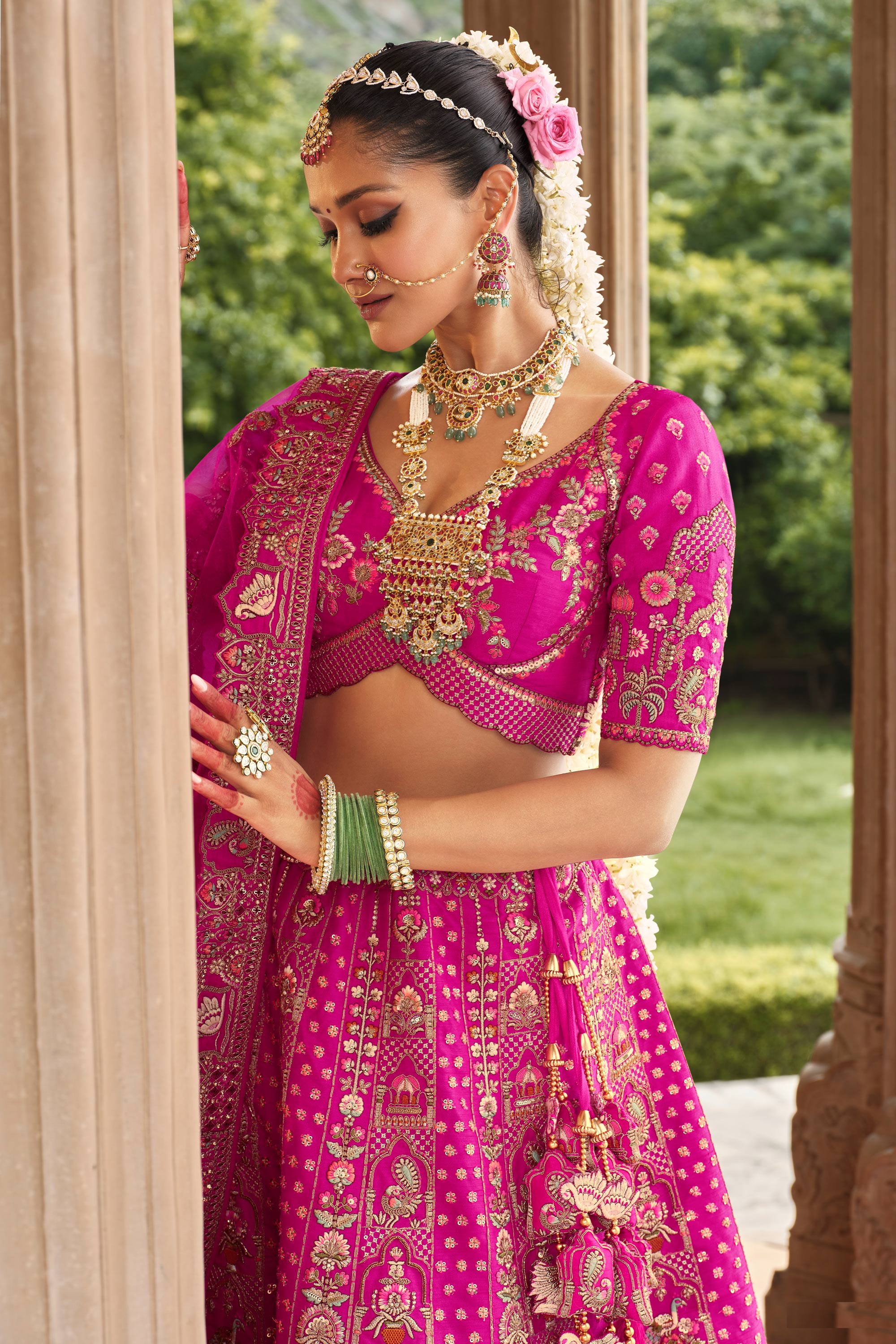 Heavy Embroidered Magenta Bridal Lehenga Set